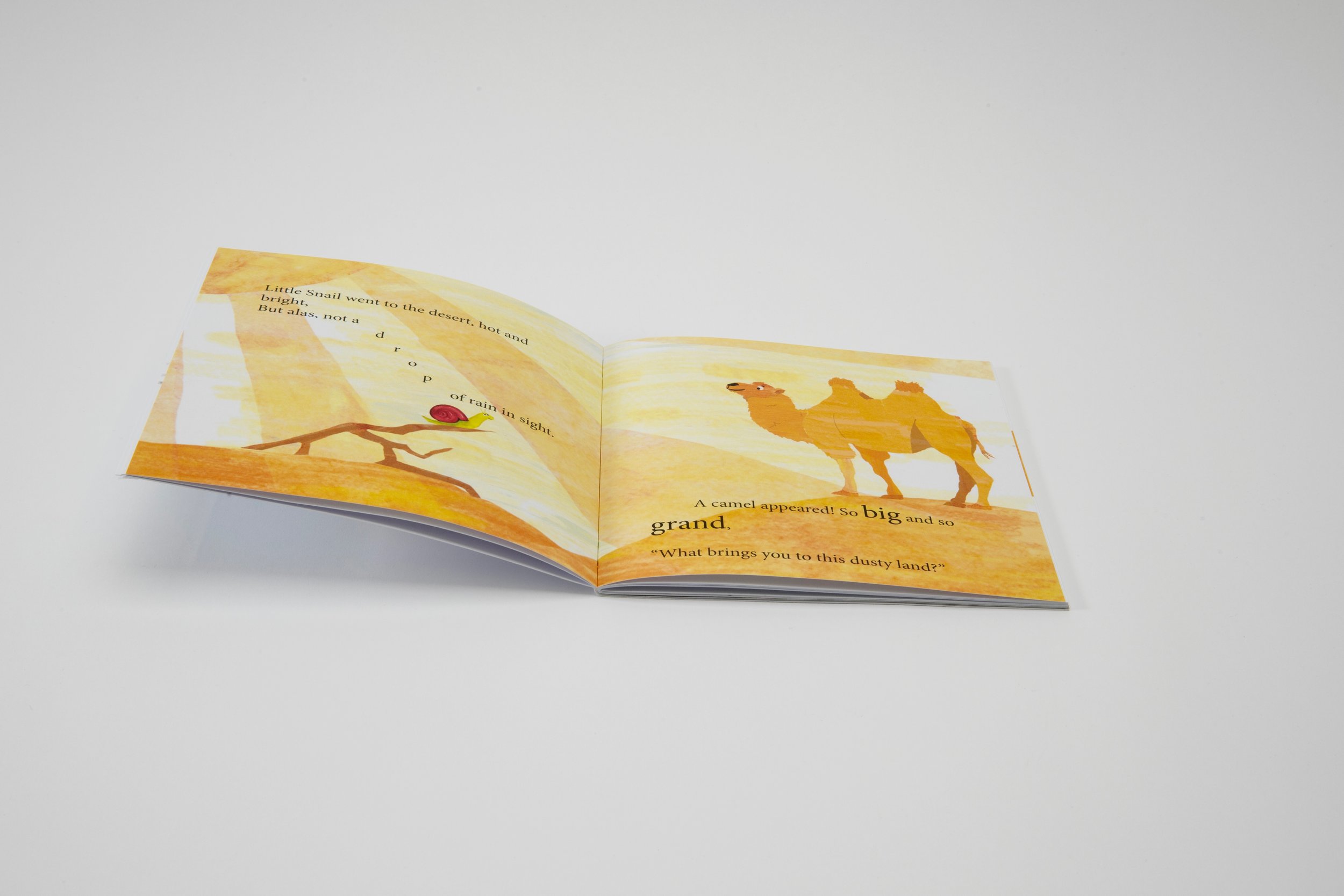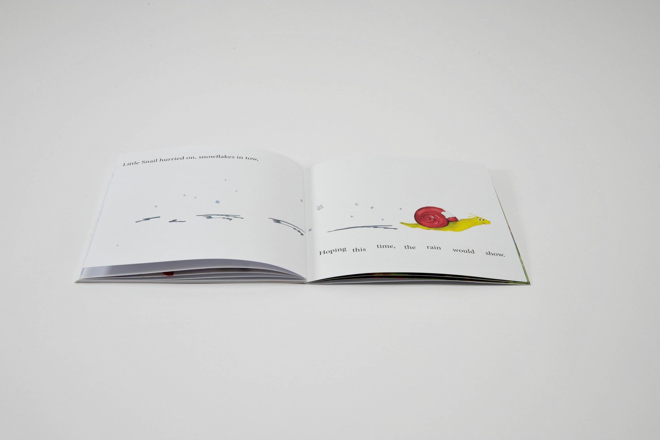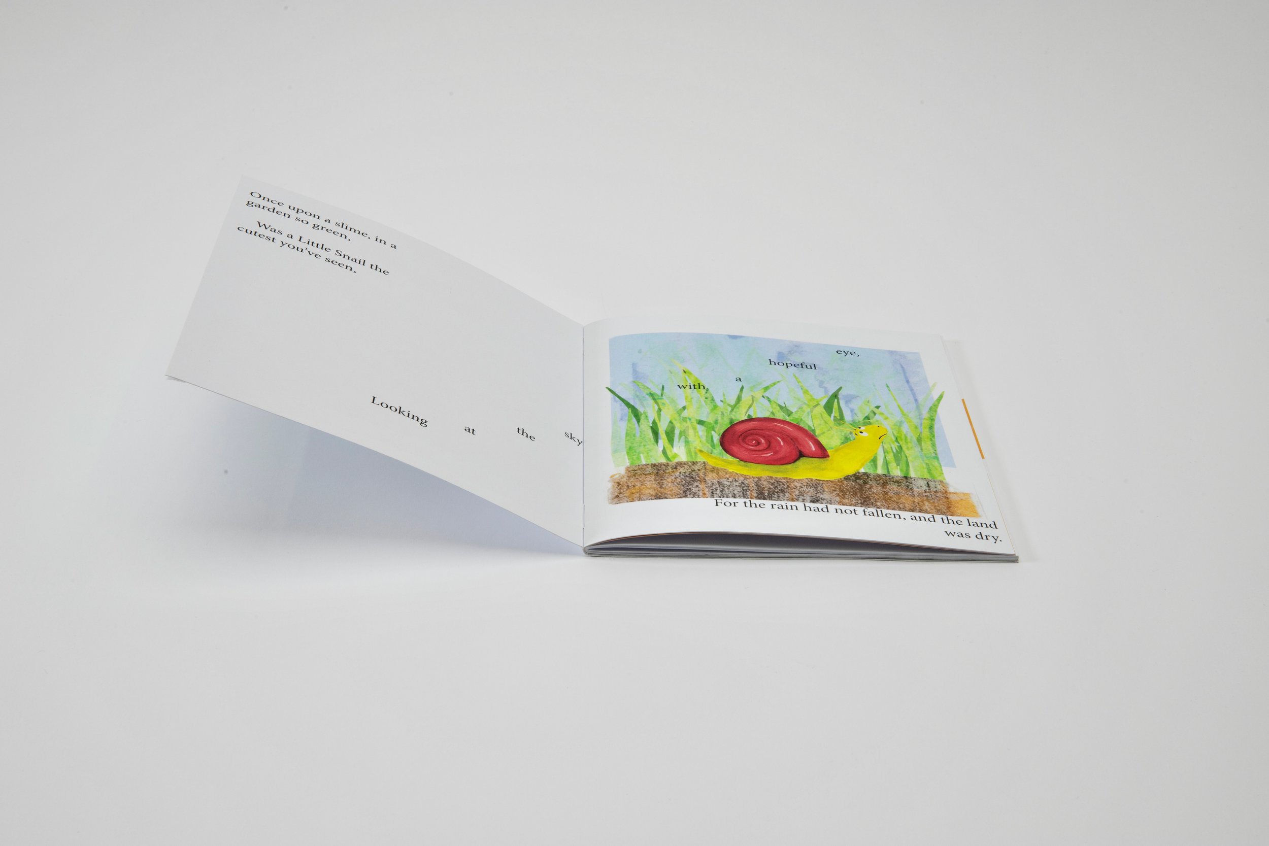 A fully collaged children's story book, about a Snail's journey to finding rain. This story follows a little snail who travels between climates, meeting different characters along the way in the search for rain.